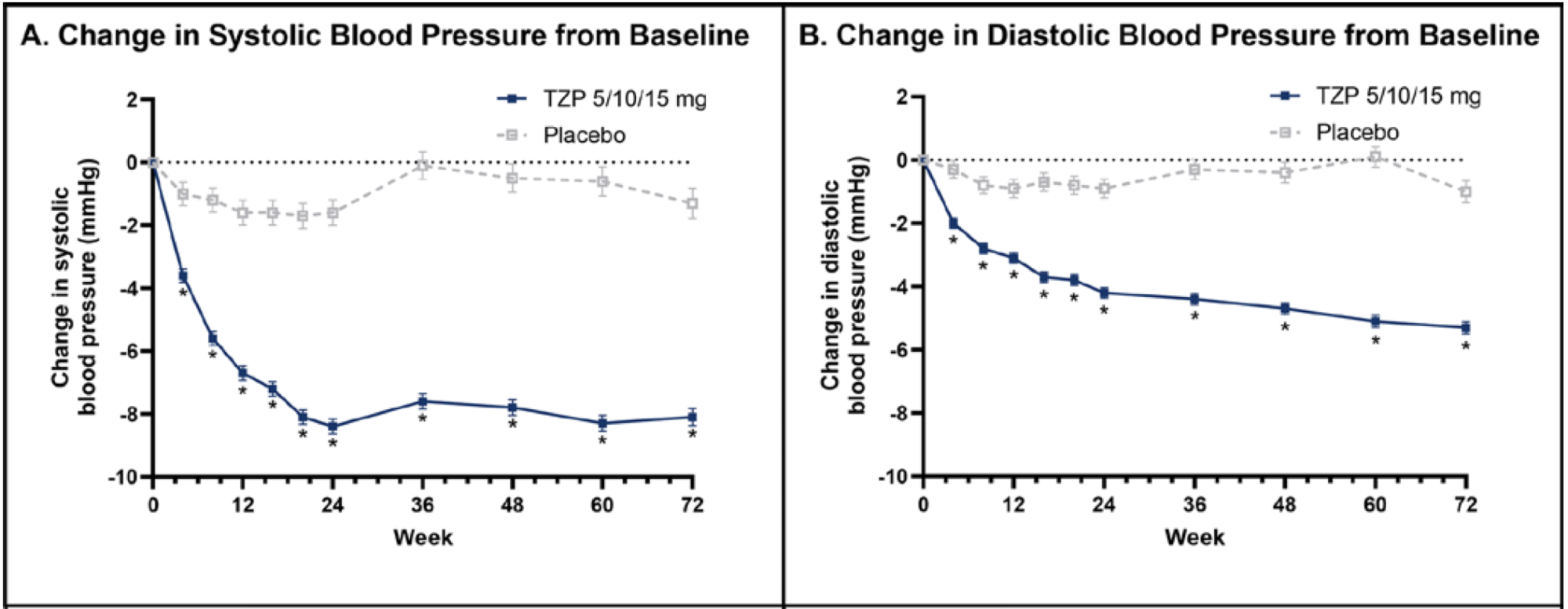 1. Krumholz HM, de Lemos JA, Sattar N, et al. Tirzepatide and blood pressure reduction: stratified analyses of the SURMOUNT-1 randomized controlled trial. Heart. 2024;110(19):1165–1171.