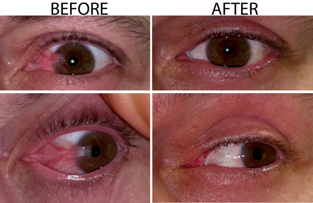 Examples of Dr. Shomer's Pterygium Surgeries Before and After, Utilizing Sutureless Amniotic Membrane Technique